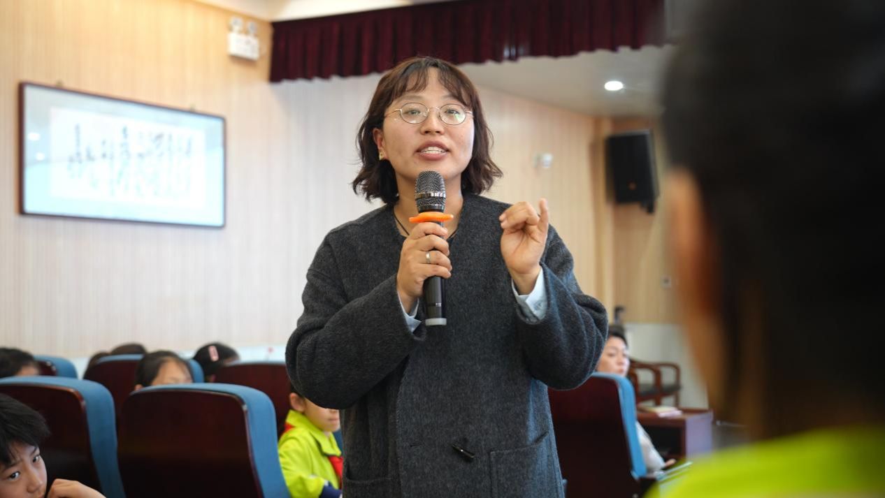 聘任仪式结束后,科普讲座正式拉开帷幕。水利工程系王亚晖博士以“小水滴的大使命—节约用水与节水灌溉”为主题,为现场小学生带来了一堂生动易懂、趣味盎然的科普课堂。讲座开篇以情境导入,用通俗易懂的语言讲解了地球水资源分布、淡水资源的稀缺性,让同学们深刻认识到节约用水的重要意义,引导大家树立“节水光荣、浪费可耻”的环保理念。