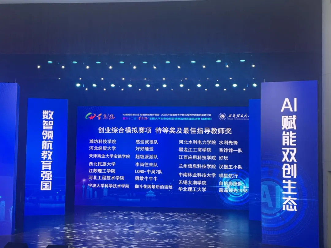 2025年10月19日,第十二届“学创杯”全国大学生创业综合模拟演训活动总决赛在成都理工大学圆满收官。我系学子不负众望,斩获国家级特等奖一项!