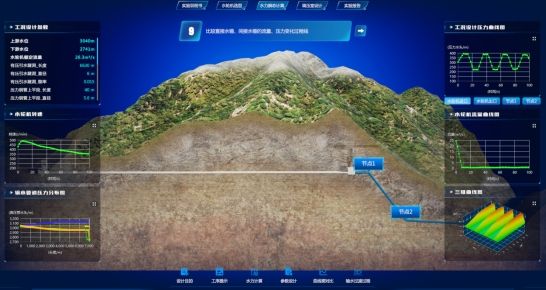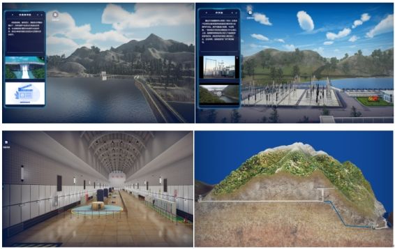 ①三维电站场景。构建了包括水库、进水口、引水隧洞、调压室、压力管道、厂房的三维模型,学生可自由漫游,从系统层面理解各建筑物的空间布局与水力联系。
