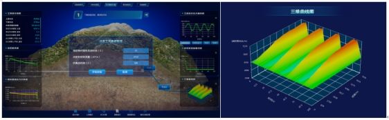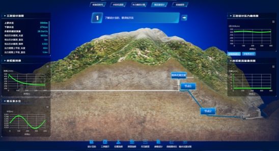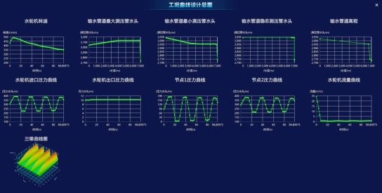 ④压力管道三维可视化与动态曲线相结合。支持导叶关闭时间、糙率等参数调节;以红-黄-绿-蓝渐变色谱实时显示水击压力空间分布;同步输出关键断面压力时程曲线,便于与理论结果对比验证。