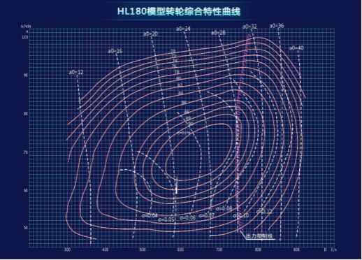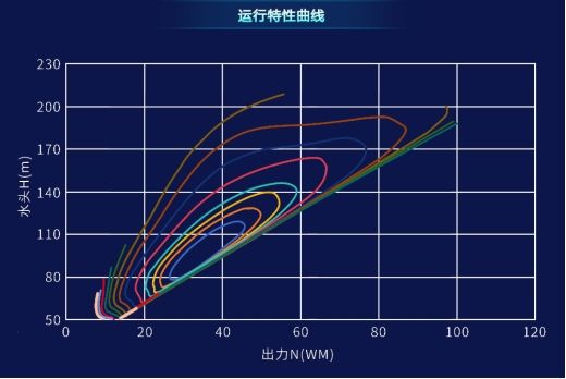 ③水轮机特性曲线库。内置混流式、轴流式共10余种型号的模型综合特性曲线,支持学生自主选择水轮机型号,验证水轮机主要参数计算,并动态生成运转特性曲线,辅助学生完成选型计算与效率验证。